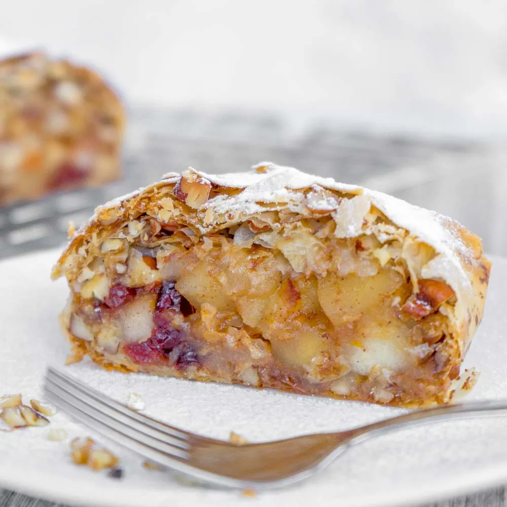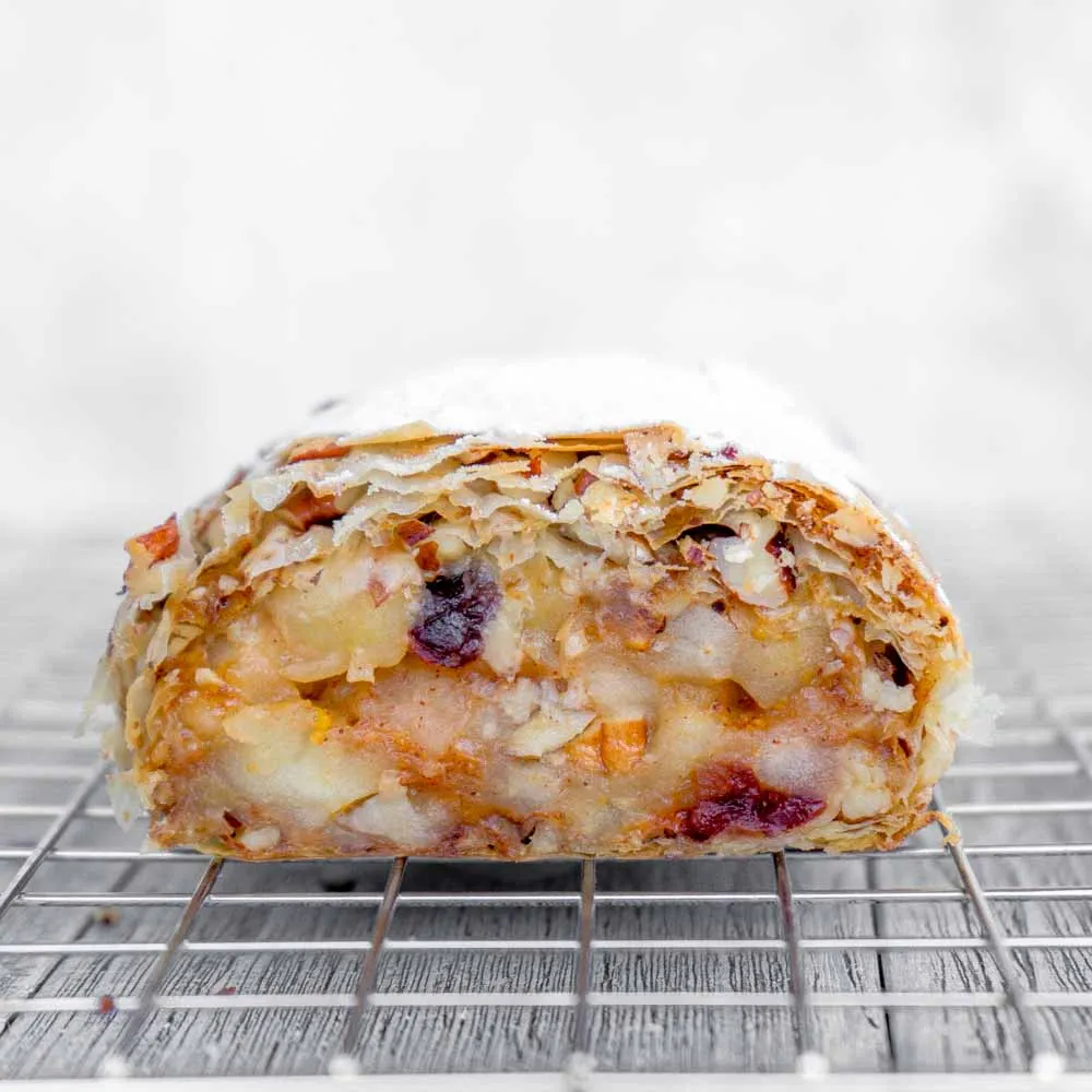 на 1 небольшой штрудель, 3-4 порции (∼24 см в длину, 10 в ширину).