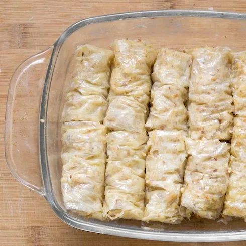Сам принцип прост — берем орехи, заворачиваем в тесто, запекаем и заливаем сиропом. Вкус зависит от того, какие орехи ты будешь использовать, и какие пряности добавишь в сироп.