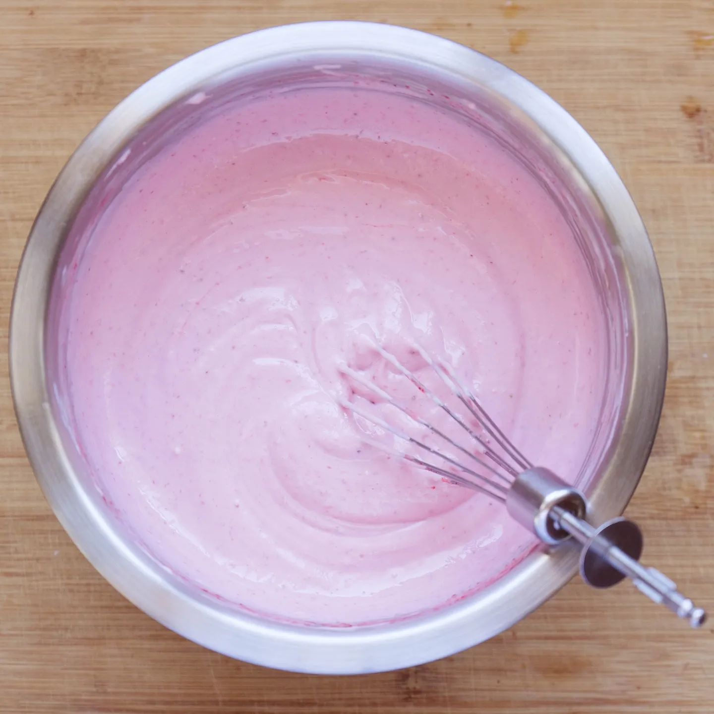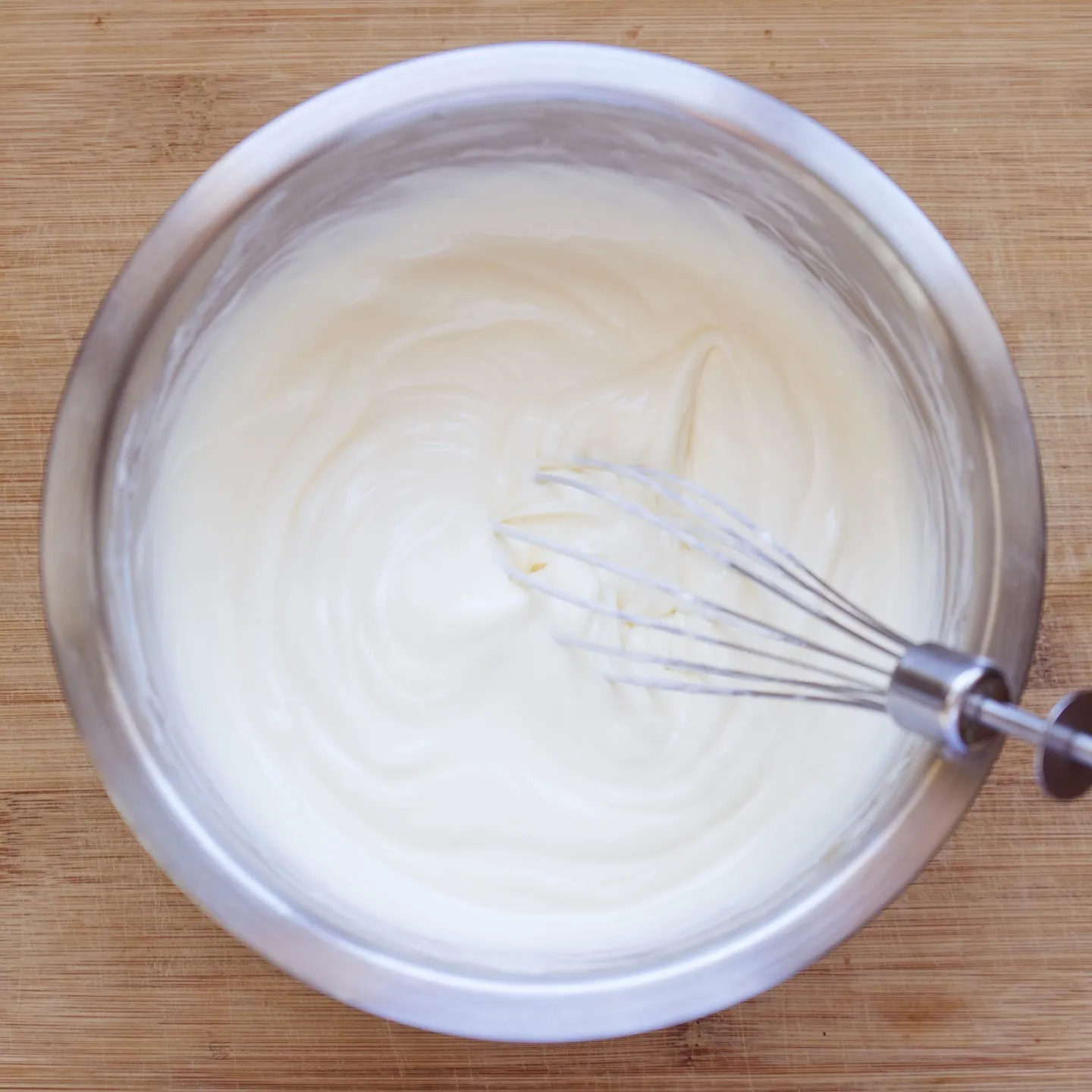 Венчик здесь использую только потому что делаю вручную, а он лучше смешивает ингредиенты. Ни чего не взбиваю. Если у тебя миксер — используй насадку «лопата», иначе можешь напустить пузырей воздуха в массу, которые при нагреве начнут расширяться, и чизкейк может треснуть.