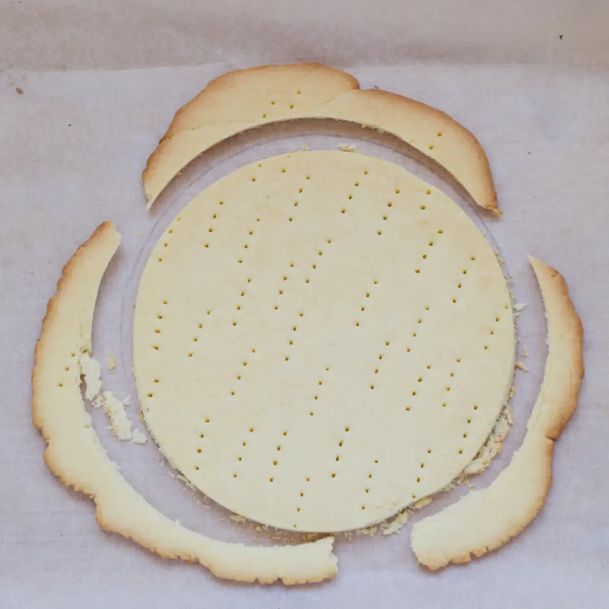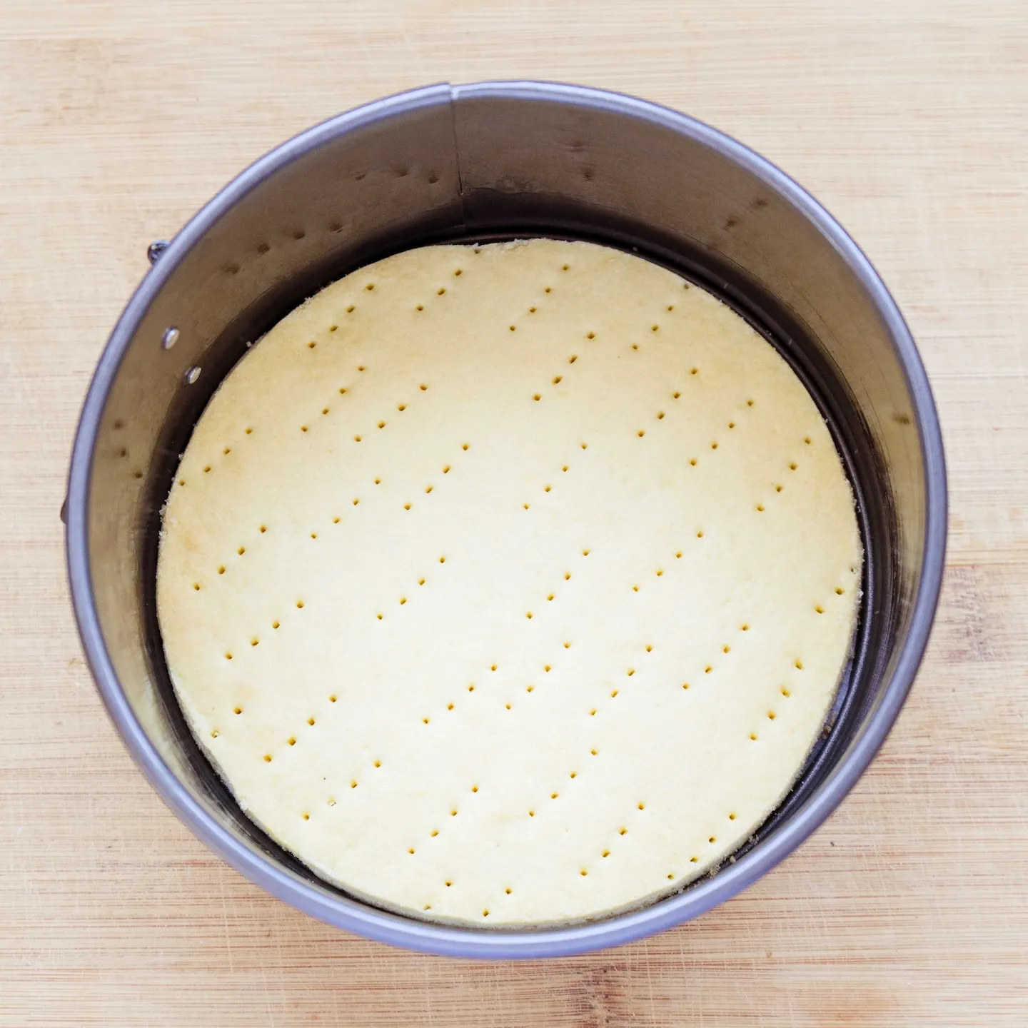 - Подготовим основу и заранее достанем сыр из холодильника, чтобы он дошел до комнатной температуры — так его будет проще смешать с другими ингредиентами, и не будет комочков. Мне нравится выпекать домашнюю основу из песочного теста. В нее еще можно добавить орешки, или ореховой муки (заменить 20% обычной муки из рецепта на 40% ореховой).