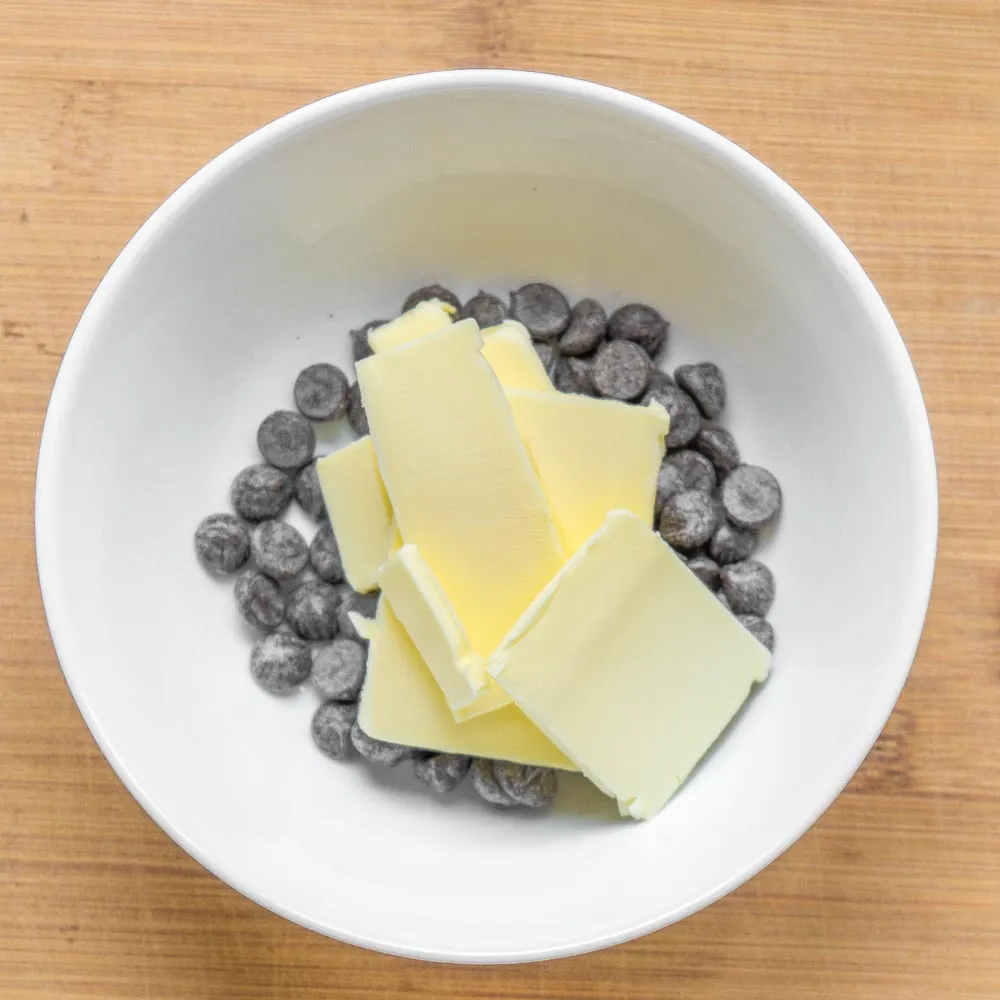 Для начала растопим 70% шоколад (40 гр) и сливочное масло (50 гр) — можно в микроволновке (импульсами по 10-20-30 секунд), можно на водяной бане. Не перегрей, чтобы масса не свернулась!