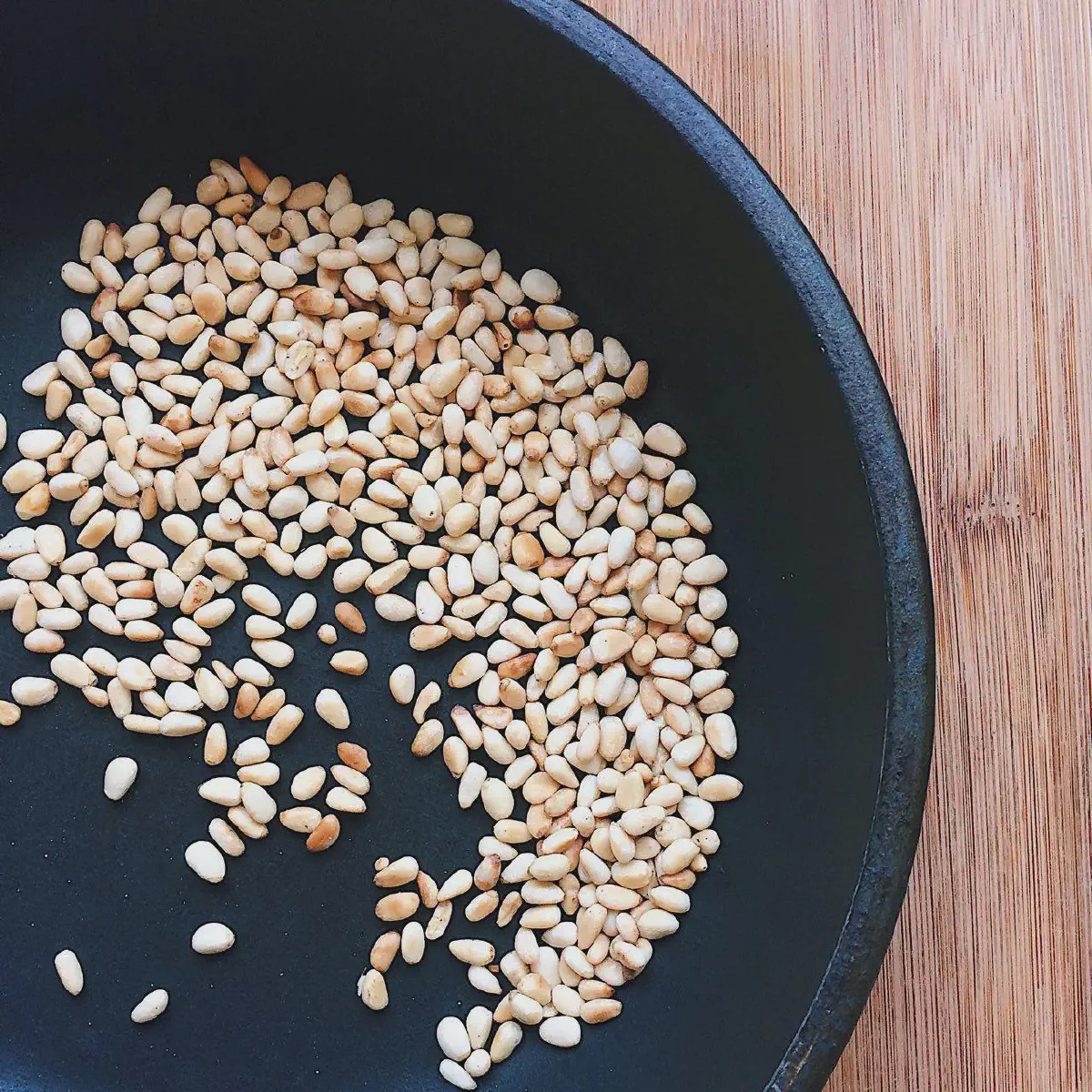 Кедровые орешки (45 гр) прокалить на сухой сковородке до появления запаха и золотистого цвета.