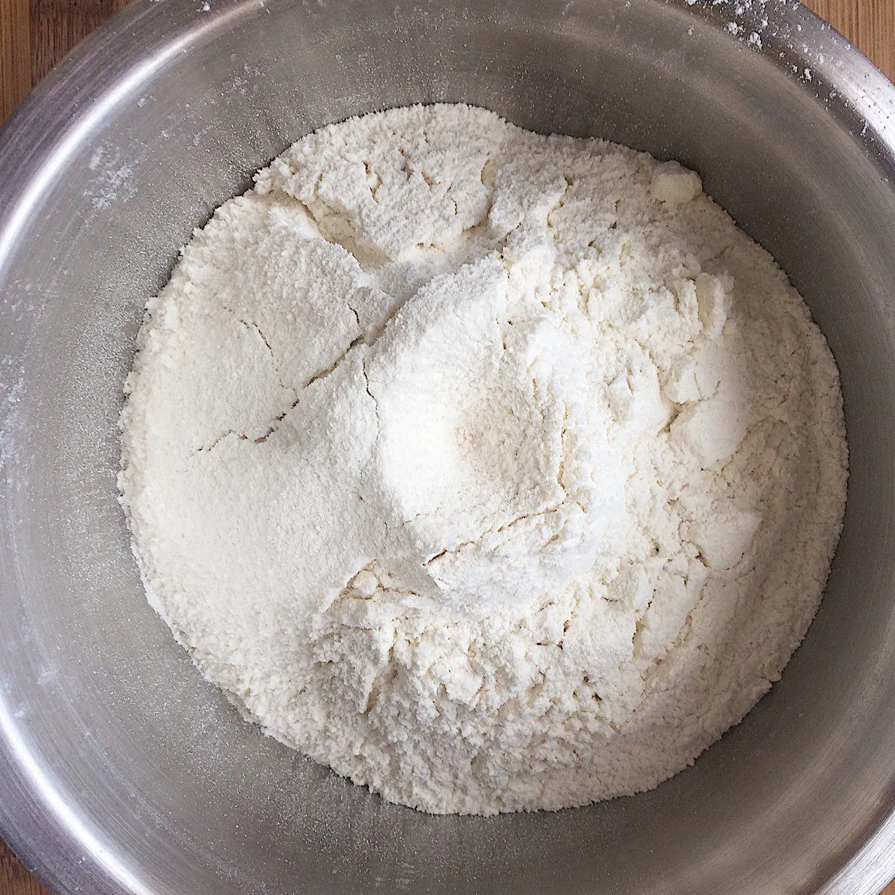 Сразу же просейте муку в другую миску — ее нужно добавлять в горячую смесь, и времени просеивать потом не будет.
