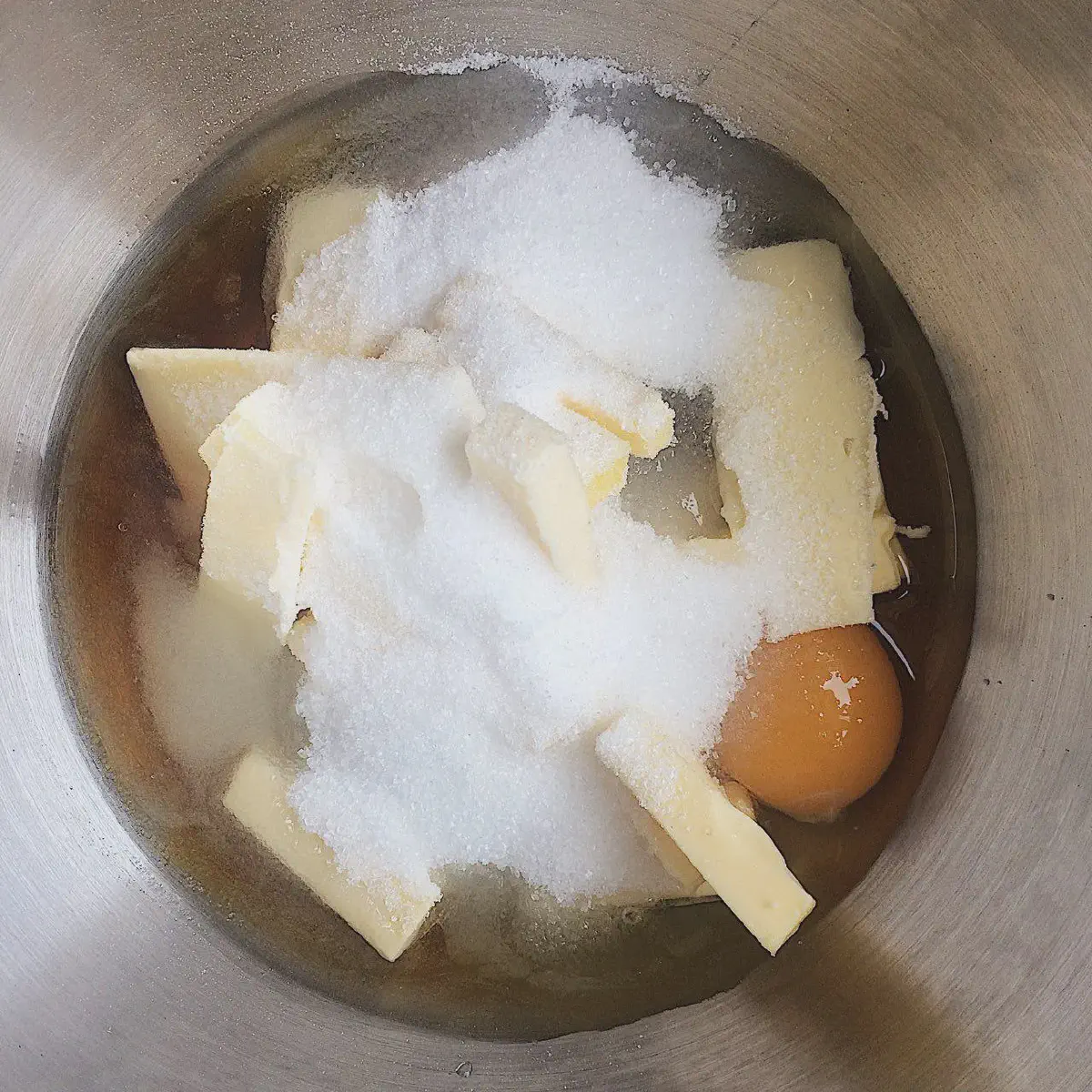 Сливочное масло (100 гр) режем на брусочки в 0.5 — 1 см — так оно быстрее расплавится, и яйца не свернутся от долгого нагрева. Складываем в жаропрочную миску. Туда же добавляем яйца (2 шт, 110 гр), сахар (100 гр) и мед (70 гр).