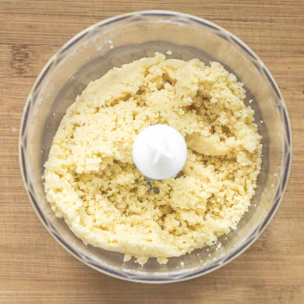 - В миндаль вводим половину сиропа, и миндальный экстракт. Пробиваем до образования крупной крошки.