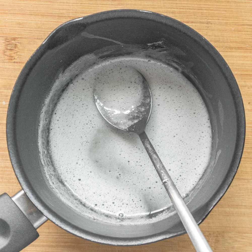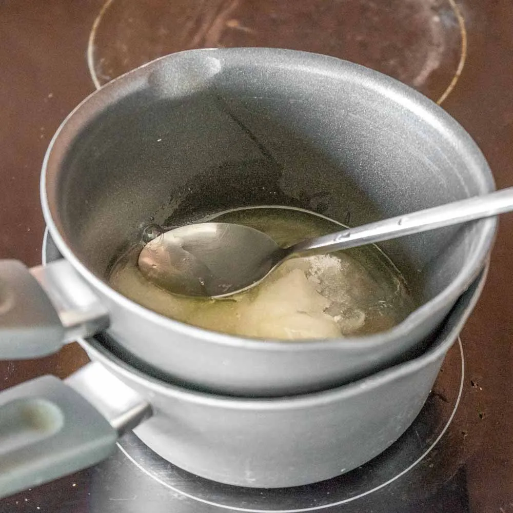 Дно посуды, в которой нагреваешь белок не должно прикасаться к поверхности воды нижней кастрюльки — так сложнее контролировать процесс, и смесь может очень быстро перегреться.