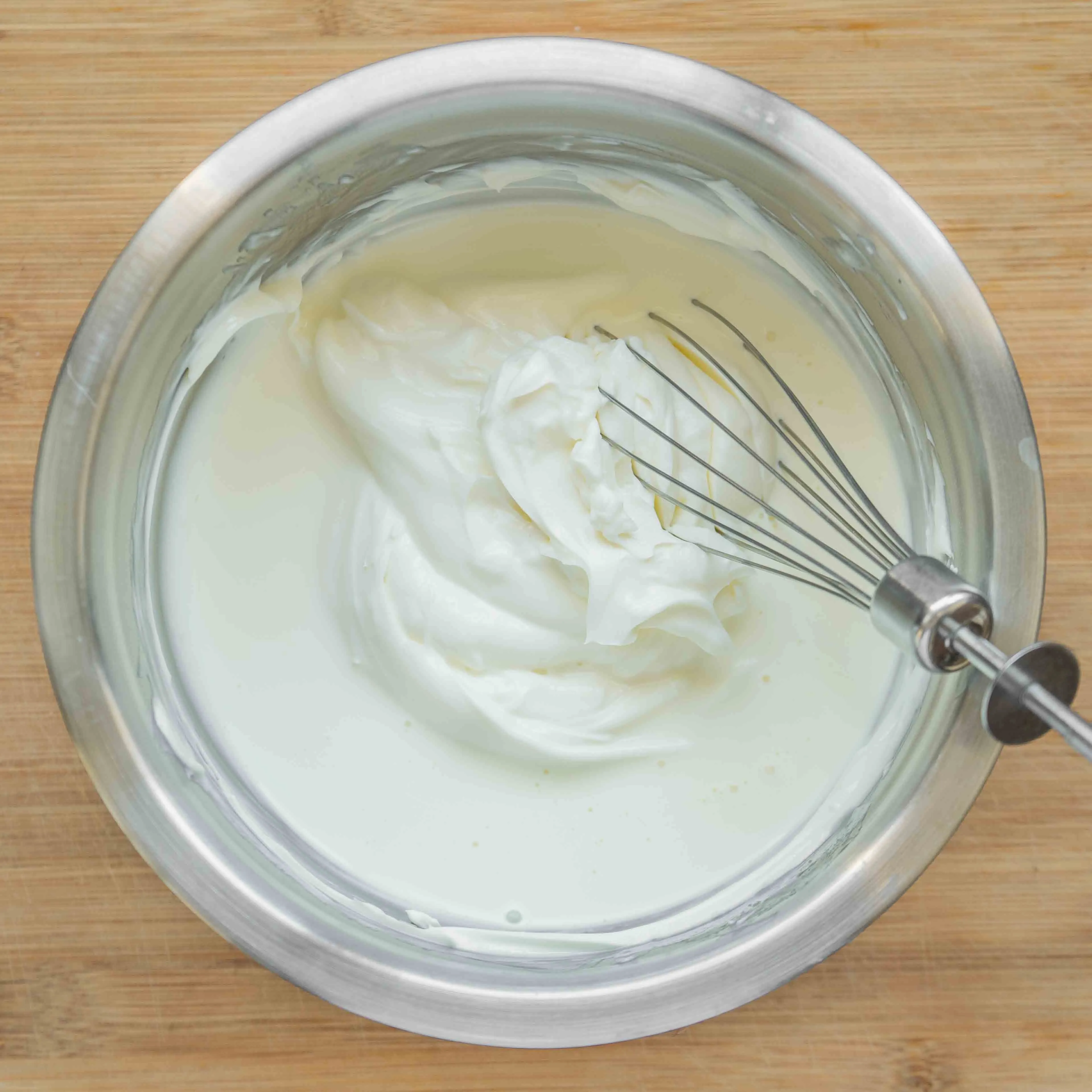 Стационарным миксером это делать намного удобнее, и результат получается лучше — пузырики равномерно-мелкие, и в итоге будет более равномерная текстура.