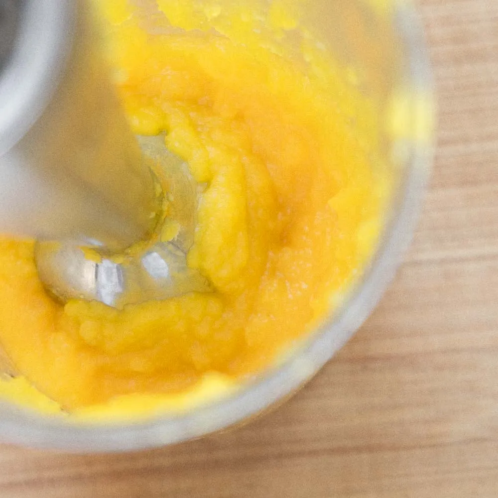 Для рецепта нам нужно 160гр. пюре, здесь его может получиться чуть-чуть больше за счет того, что часть воды с кипячения не процедится.