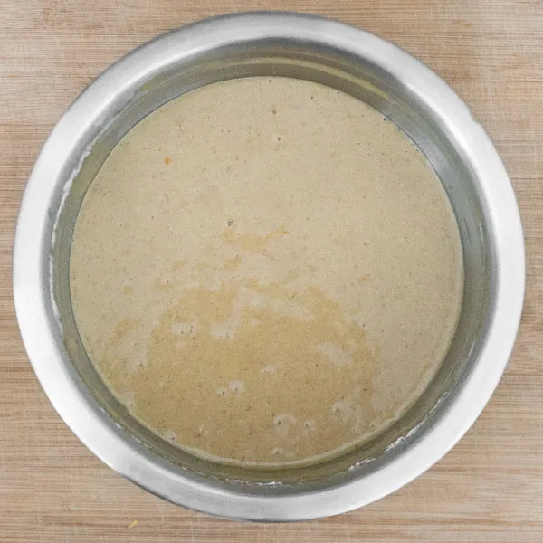 Сначала смесь станет жиже, чем была изначально. Это нормально, она загустеет при нагреве.