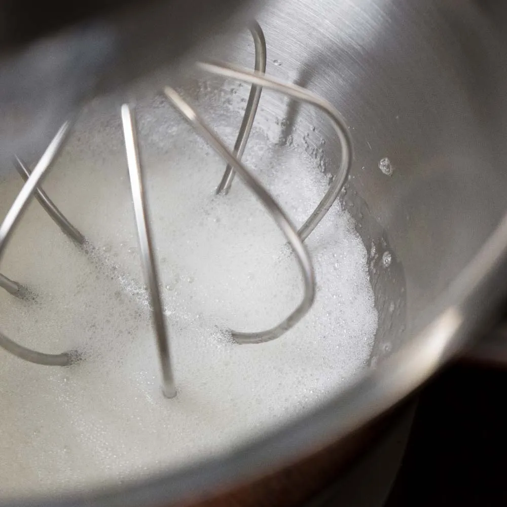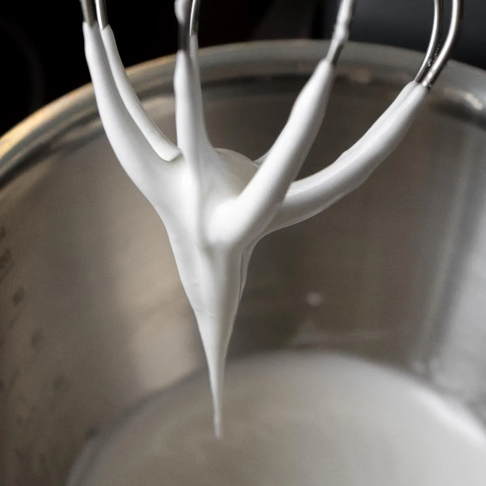 - В миску миксера складываем чисто белки (40 гр.), и взбиваем на средней/средне-высокой скорости (4.5 из 6) до тех пор, пока они по всему объему не превратятся в пену.