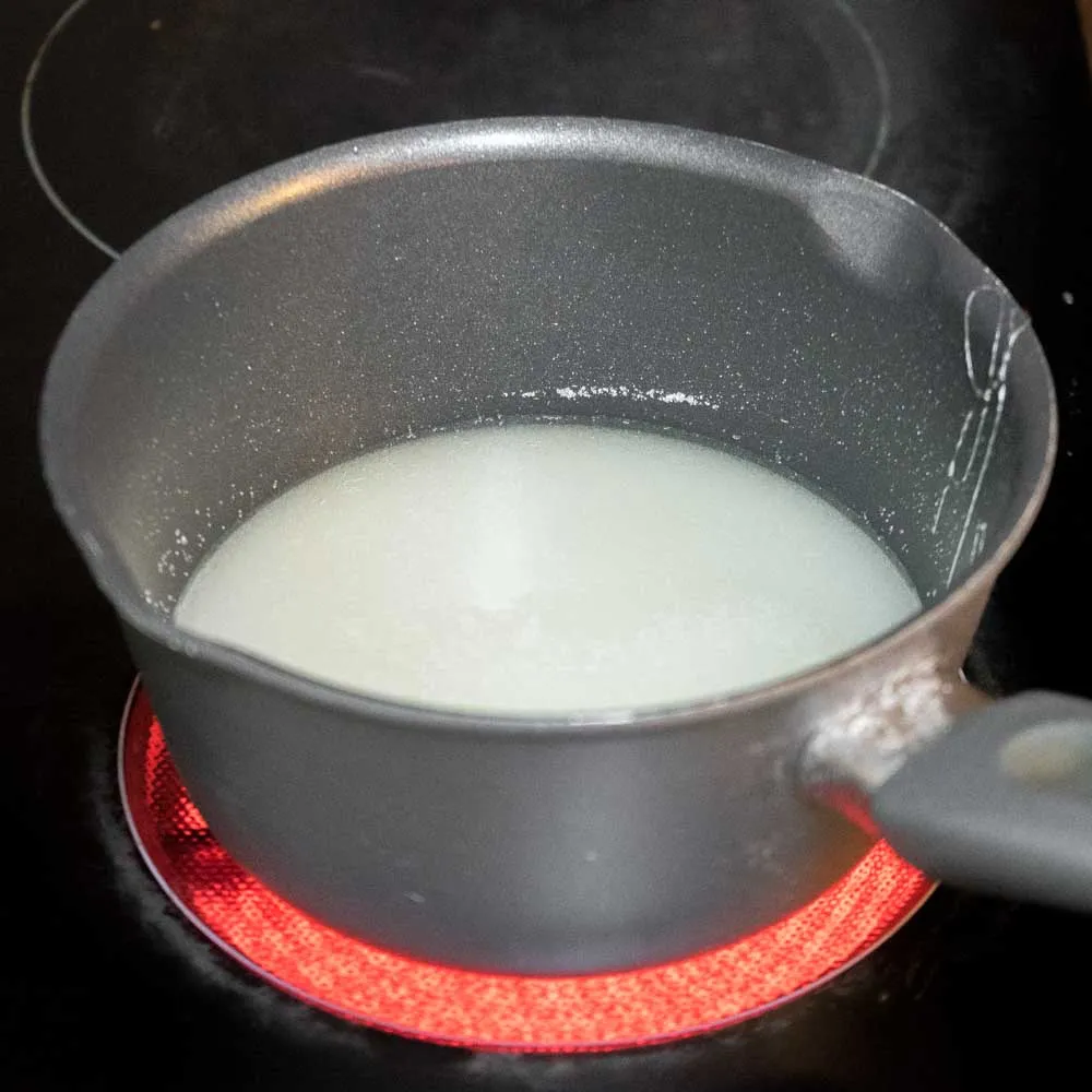 - В ковшичке соединяем воду (60 гр.), белый сахар (170 гр.) и глюкозный сироп (110 гр.). Сироп нужен чтобы предотвратить кристаллизацию сахара, и нуга осталась мягкой. Заменять на что-то другое не пробовала.