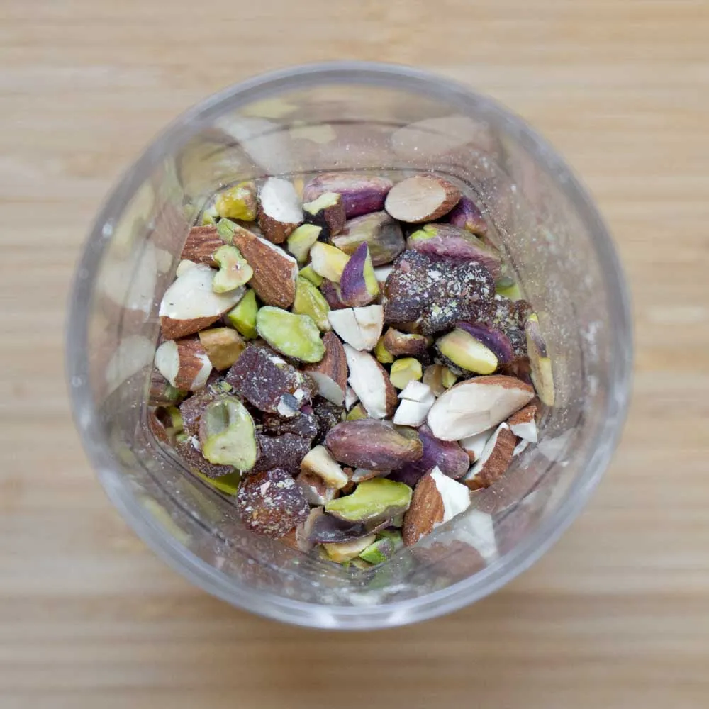 - Заранее обжарим орехи до золотистости, помоем сухофрукты и хорошенько высушим бумажными салфетками — от лишней влаги нуга будет течь. Порежем все крупно, и смешаем.