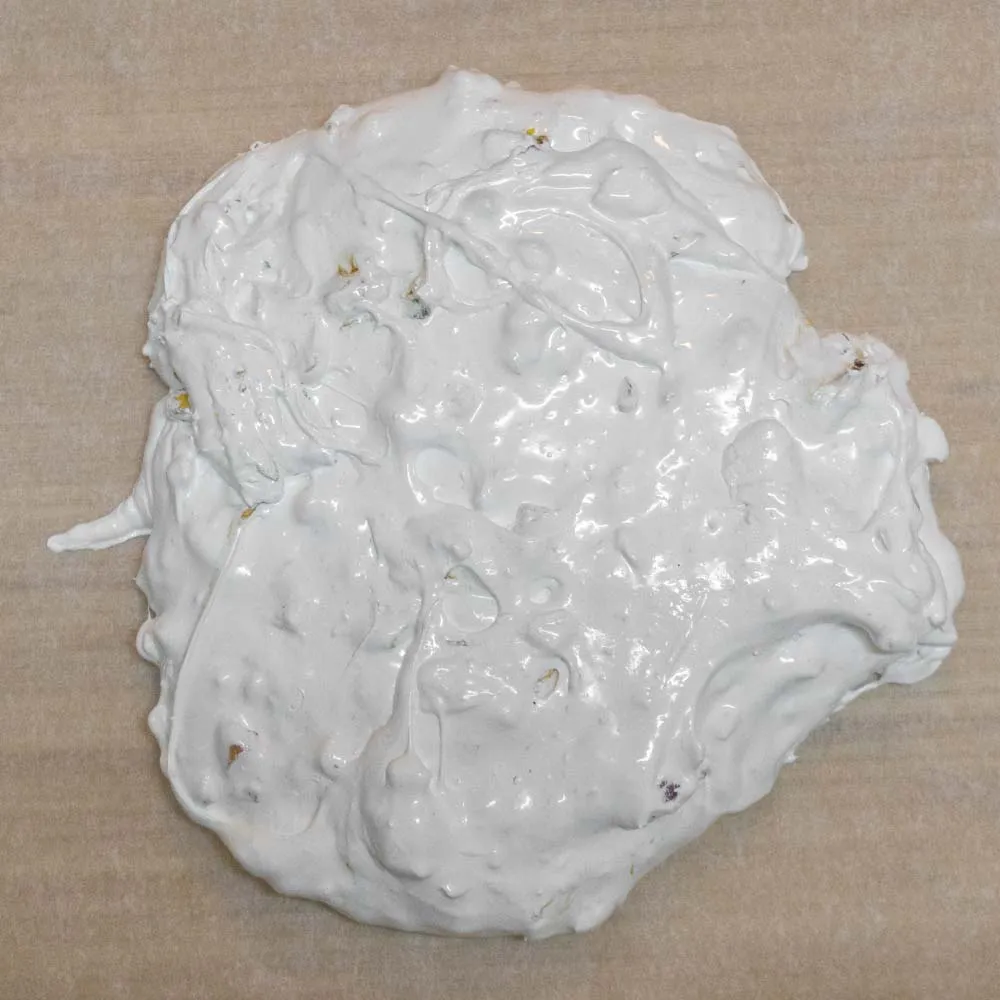В первый раз я ее выложила просто на бумагу для выпечки, от которой отлипает все… кроме нуги, как оказалось =D К пленке она тоже прилипает. Если допустишь мою ошибку — просто заморозь ее, и все отлипнет. Потом присыпешь пудрой с крахмалом.