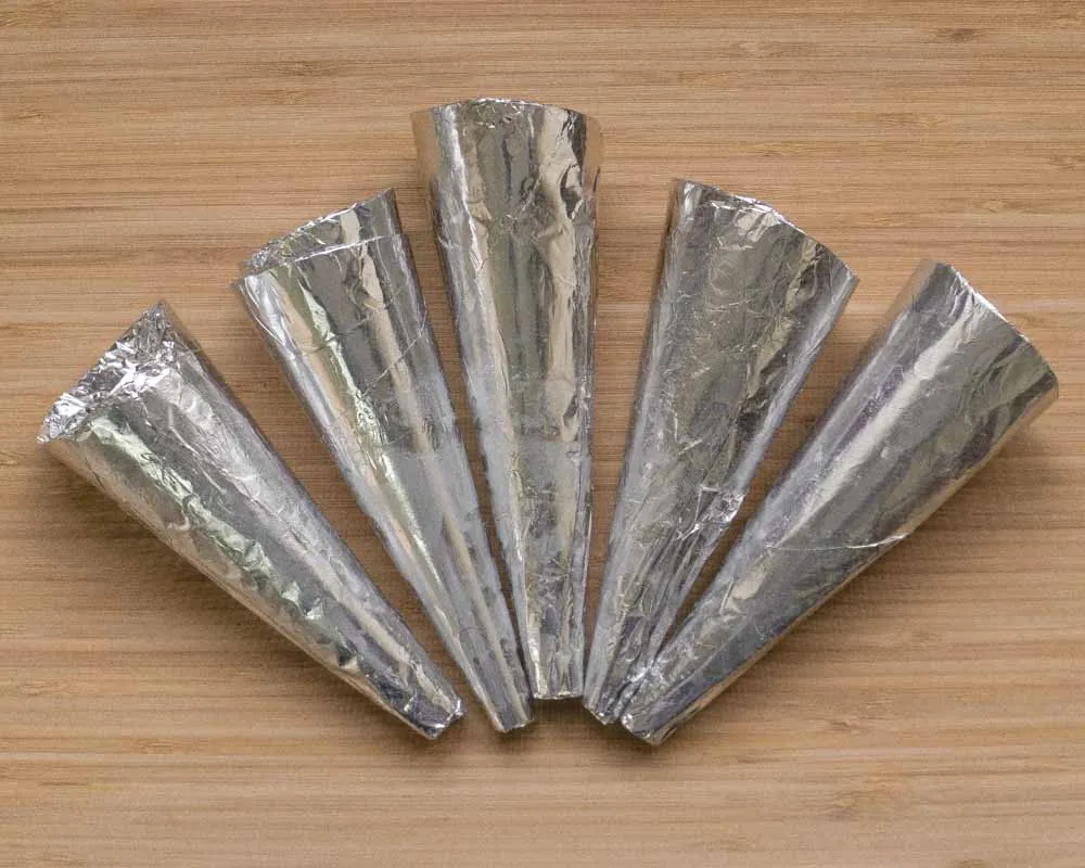 Обматываем их фольгой, кончики загибаем внутрь с обоих сторон. Каркас из картона будет хорошо держать форму, и их хватит на несколько выпечек. Но если планируешь печь часто — все же купи железные формы, я не уверена, что эти в один прекрасный момент не загорятся прямо в духовке.